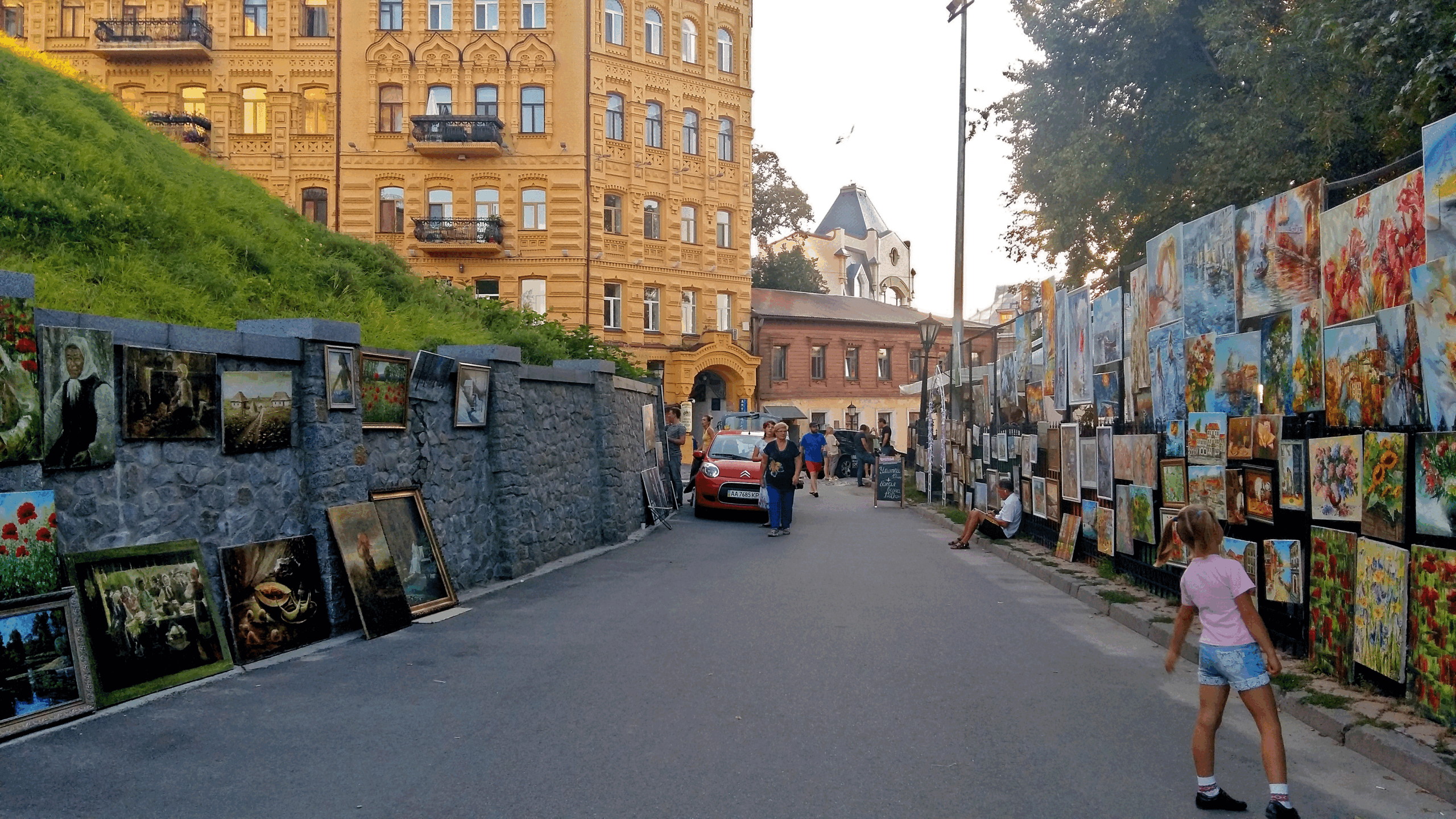 Любая пешая прогулка по Киеву приводит туристов на знаменитый Андреевский спуск – улицу, на которой стоят сувенирные лавки, мастерские, художники продают свои картины. На верху спуска расположилась Андреевская церковь, давшая название улице.