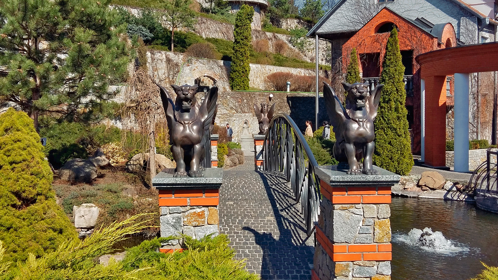 - 14:15 — прибытие в Буки. Осмотр парка, экскурсия по парку от местного экскурсовода. Свободное время: смотрим зоопарк с львами, медведями, овечками; сказочные композиции из деревьев, русалка на ветвях, кот ученый; прогуливаемся по мостику «затопленному» водой, наслаждаемся ландшафтным дизайном, осматриваем фонтан с Майдана Независимости; любуемся большим количеством скульптур — жабы, слон, ангелы, пес с волком… ; осматриваем церковь изнутри, на нулевом этаже — изумительные скульптуры.